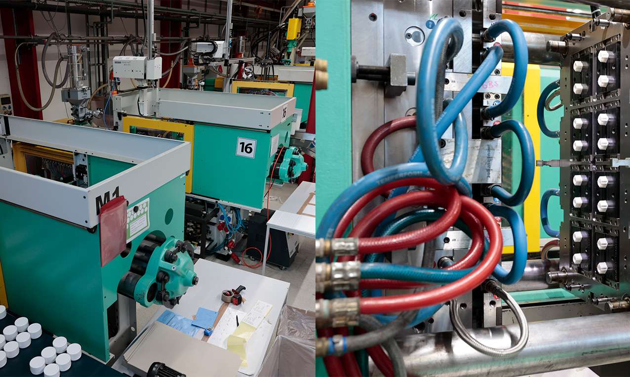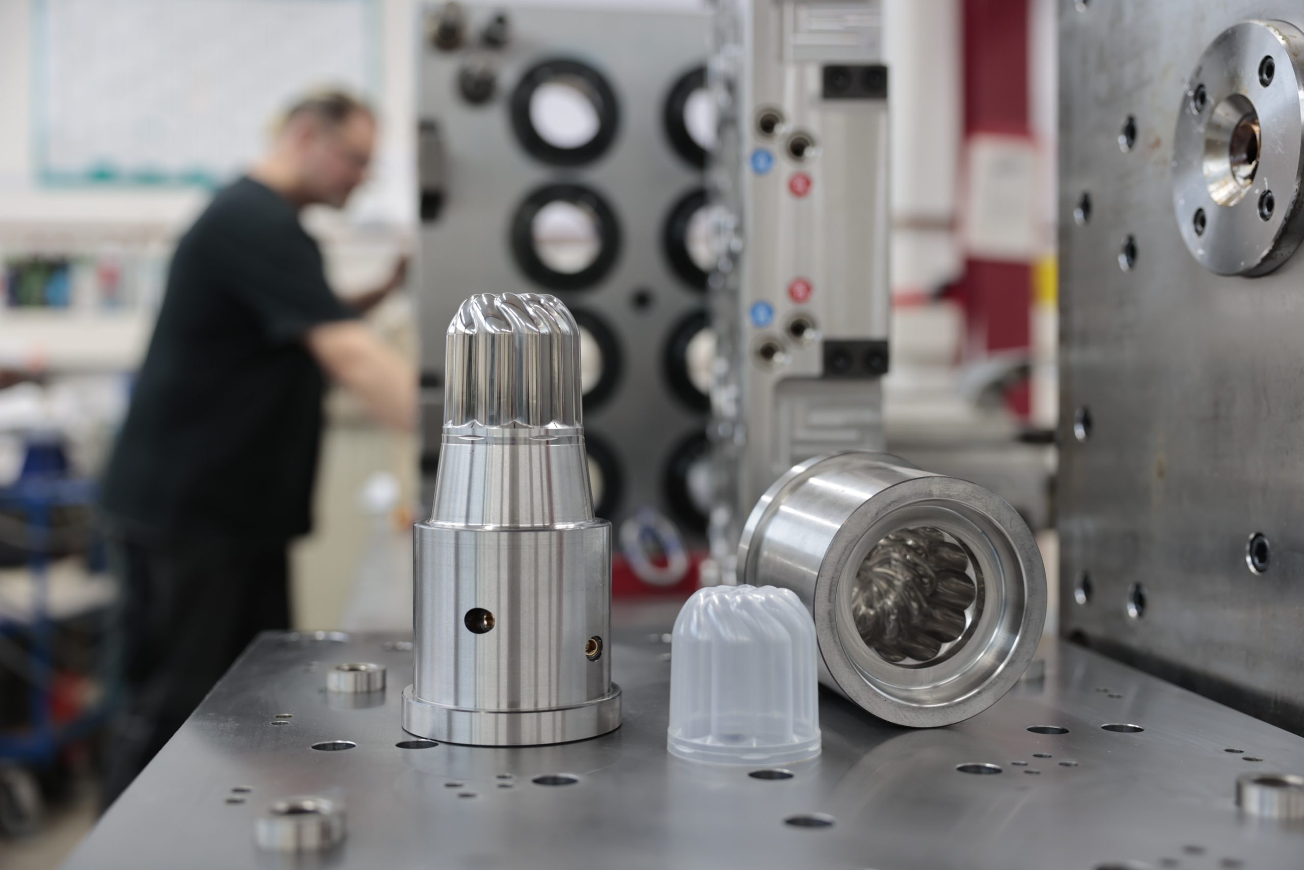 Mit unseren leistungsstarken Betriebsmitteln und unserer technologischen Kompetenz setzt unser Werkzeugbau die Fertigung hochwertiger Spritzgießformen um. So entstehen 1K-, 2K- und 3K-Spritzgießwerkzeuge sowie Ausspindelwerkzeuge für innovative Kunststoffverpackungen.